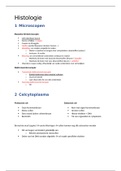 Histologie samenvatting van alle lessen. Deze samenvatting is voldoende om te slagen voor het theorie-examen van prof. Vral. Bevat geen tekeningen maar wel alle info van de slides samen met de extra info gegeven door prof Vral.